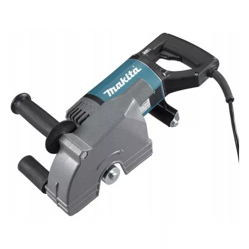 Штроборез Makita SG-181 – это мощный и высокопроизводительный сетевой электроинструмент, предназначенный для точного и ровного прокладывания штроб в каменных, кирпичных и бетонных стенах, а также для прокладки труб и электропроводки. Бороздодел весит 5,6 кг и оснащен 5-метровым сетевым кабелем. Его корпус выполнен из армированного пластика, а редуктор накрыт кожухом из магниевого сплава. Защиту оператора от вылетающей из распила каменной пыли обеспечивает кожух из литого алюминия. Двигатель данной модели Макиты развивает мощность порядка 2150 Вт. Без нагрузки инструмент способен производить до 7 200 об/мин. Максимальная глубина распила составляет от 15 до 60 мм, а максимальная ширина – от 9 до 43 мм. Для его эксплуатации требуются пильные диски диаметром 180 мм.