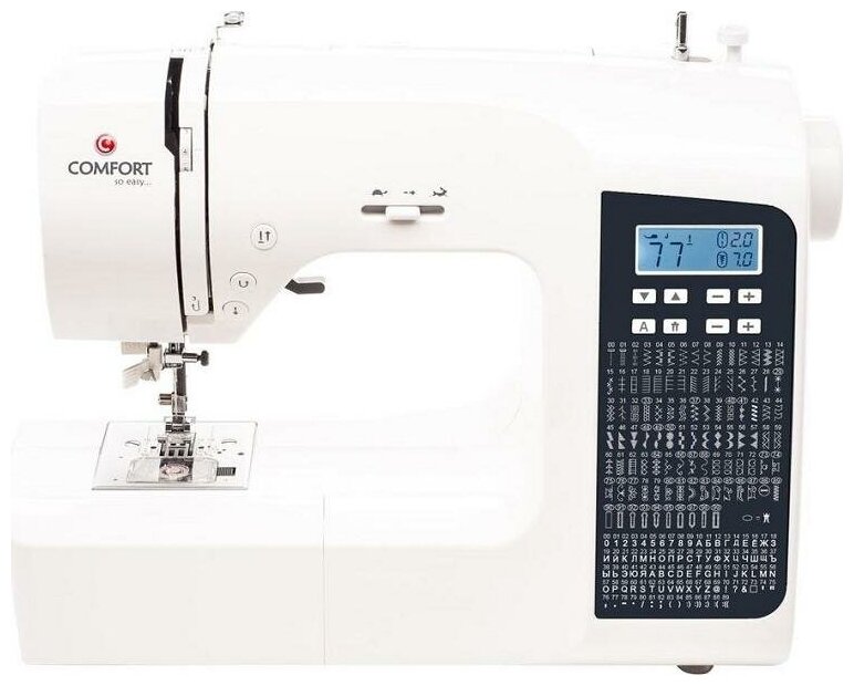Швейная машина Comfort 1000 имеет оптимальный набор функций, поэтому подходит как для новичков, так и для профессионалов. Модель создает 190 видов строчек, в том числе оверлочные, потайные и декоративные. Для работы с объемными проектами в комплекте с устройством есть съемный пластиковый столик. Управление настройками осуществляется с помощью монохромного дисплея и сенсорных кнопок. Функция «Реверс» оптимальна для фиксирования шва без переворота материала. Нажим и подъем лапки можно регулировать в зависимости от плотности и типа ткани.