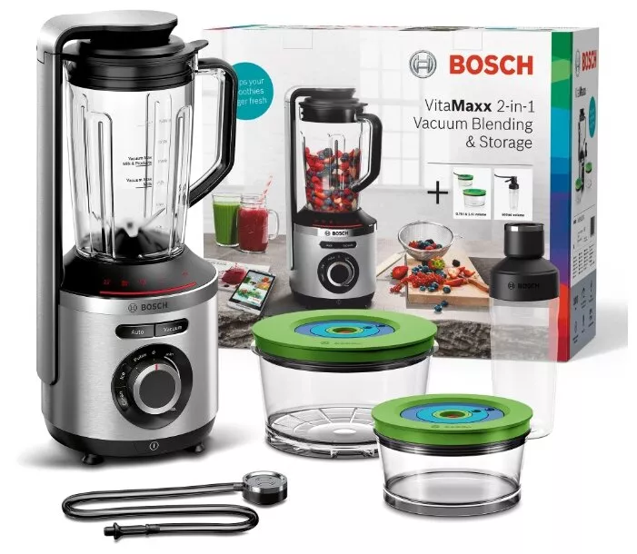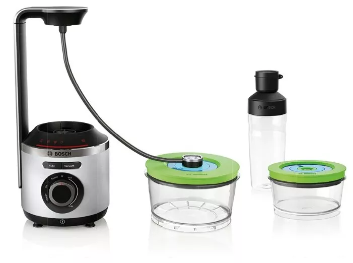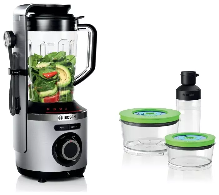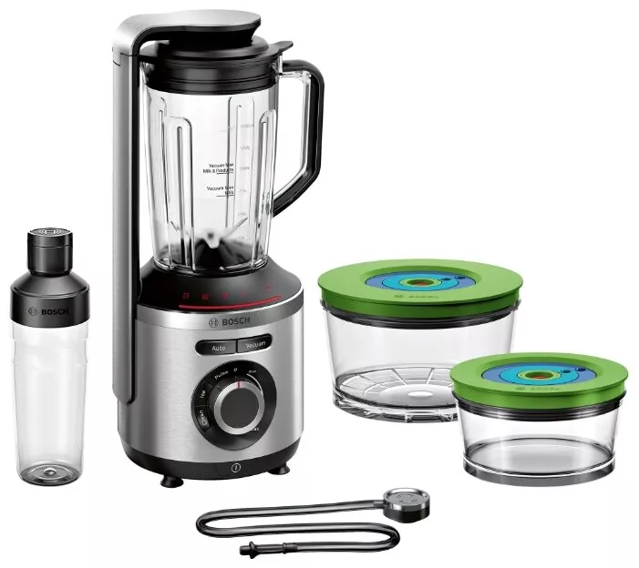 4 программы: Auto (вакуумизация + смешивание), Vacuum (создание вакуума), дробление льда, чистка; 2 вакуумных контейнера объёмом 1,5 л и 0,75 л, дорожная бутылка 500 мл |