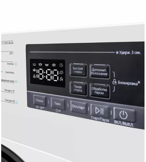 ECO 40-60 - режим стирки при температуре 40°C, без возможности её изменения, для вещей с разрешённой температурой стирки 40-60°C.