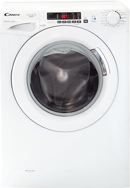 Стиральная машина Candy GVS4 126TW3/2-07 рассчитана на загрузку 6 кг белья, поэтому является довольно вместительной моделью с фронтальным типом загрузки. Размер корпуса достигает 60x85x43.2 см, поэтому прибор может быть установлен не только в ванной комнате, но и на кухне за небольшой нишей. Для удобства управления предусмотрен поворотный механизм и кнопки, также на панели управления отображаются программы и функции, открытые для пользователя. Вы можете легко изменять температуру стирки от 20 °C до 75 °C, включать функцию «Обработка паром», чтобы продезинфицировать белье, а также включать отсрочку запуска, если появились более важные дела вне дома.
