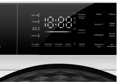 На LED-дисплее световой индикацией отражается вся информация по выбранной программе, таймер, а так же срок завершения стирки, блокировка дверцы, замка от детей и кода ошибки.