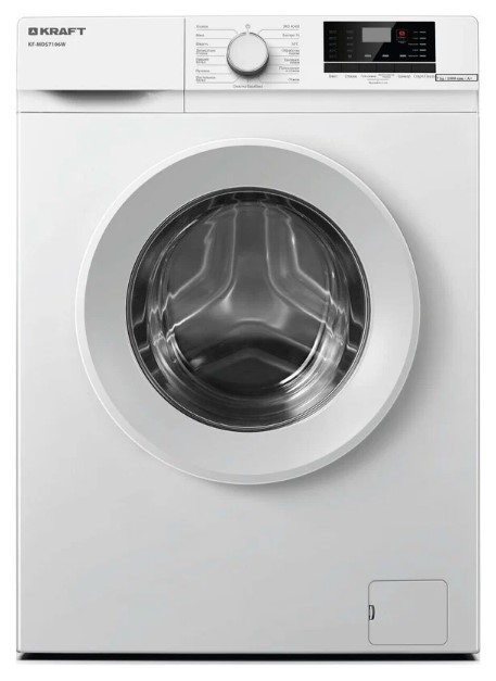 Стиральная машина KF-MDS7106W с загрузкой белья до 7 кг оснащена 15 программами стирки, максимальная скорость отжима составляет 1000 оборотов в минуту. Модель обладает функцией отложенного старта, системой защиты от перелива и блокировкой от детей, автоматическим перераспределением белья, контролем пенообразования, а также обработкой пара.