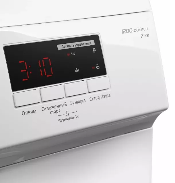 • Полный контроль и удобство. Электронное управление с дисплеем и индикацией этапов делает процесс стирки простым и понятным. Функция отсрочки старта позволяет запрограммировать машину на работу в удобное для вас время, например, ночью по льготному тарифу.