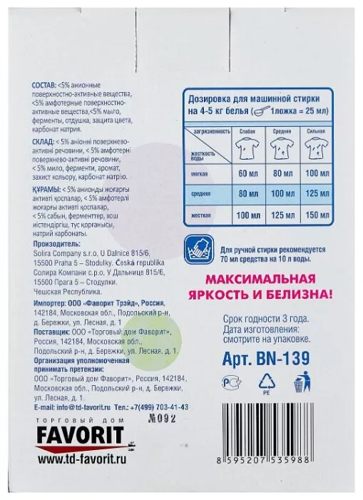 для ручной стирки, для машинной стирки, для цветных тканей, для синтетических тканей, для белых и светлых тканей, для хлопковых тканей