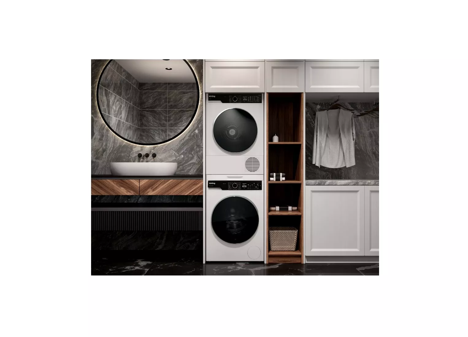 Поддерживается установка в колонну со стиральной машиной с помощью фирменного соединительного элемента DSK 260, что важно для компактных ванных комнат.