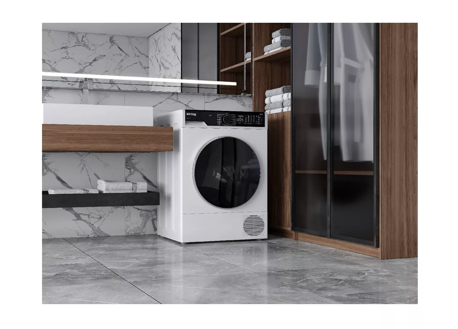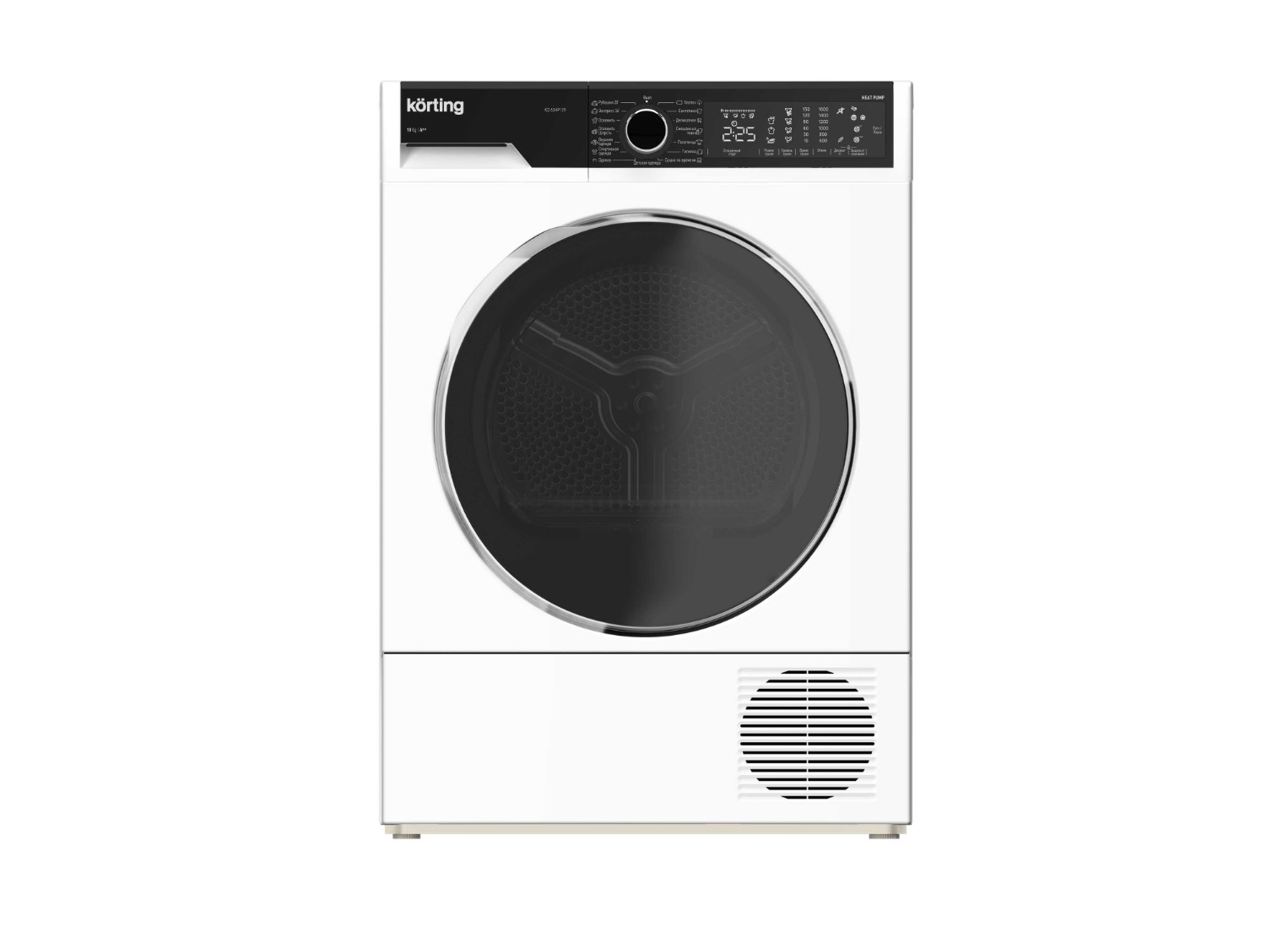 Сушильная машина Korting KD 60HP109 — это премиальная сушилка на 10 кг с тепловым насосом, барабаном Pearl Drum 120 л и классом энергопотребления A++, рассчитанная на бережную и очень экономичную сушку большого объёма белья.