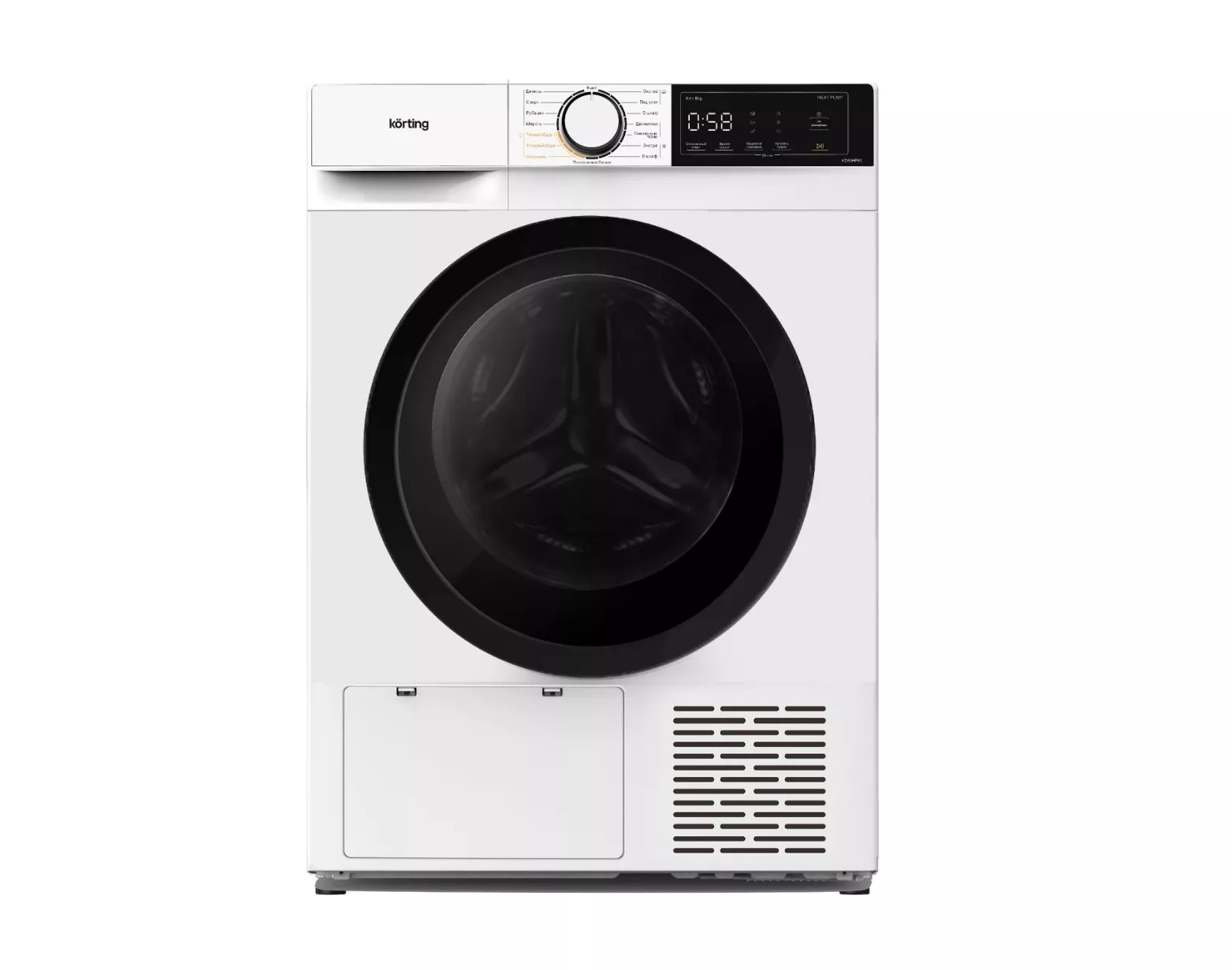 Сушильная машина Korting KD 60HP83 — это отдельностоящая конденсационная сушилка с тепловым насосом, загрузкой 8 кг и классом энергоэффективности A++, рассчитанная на бережную сушку при низких температурах.