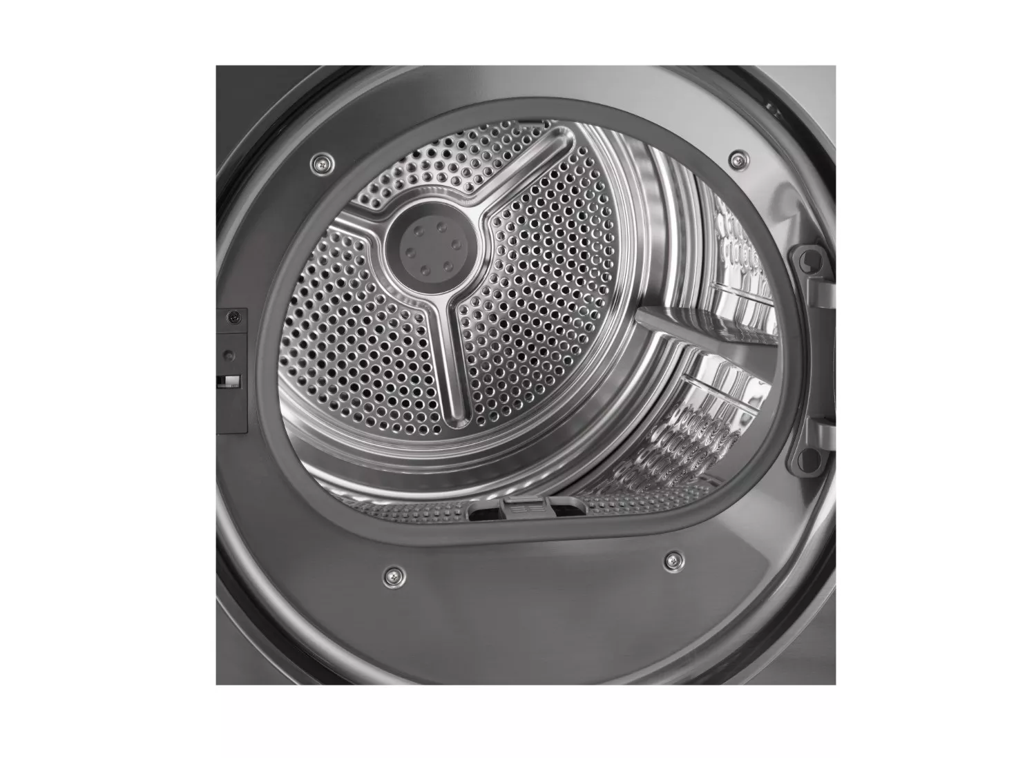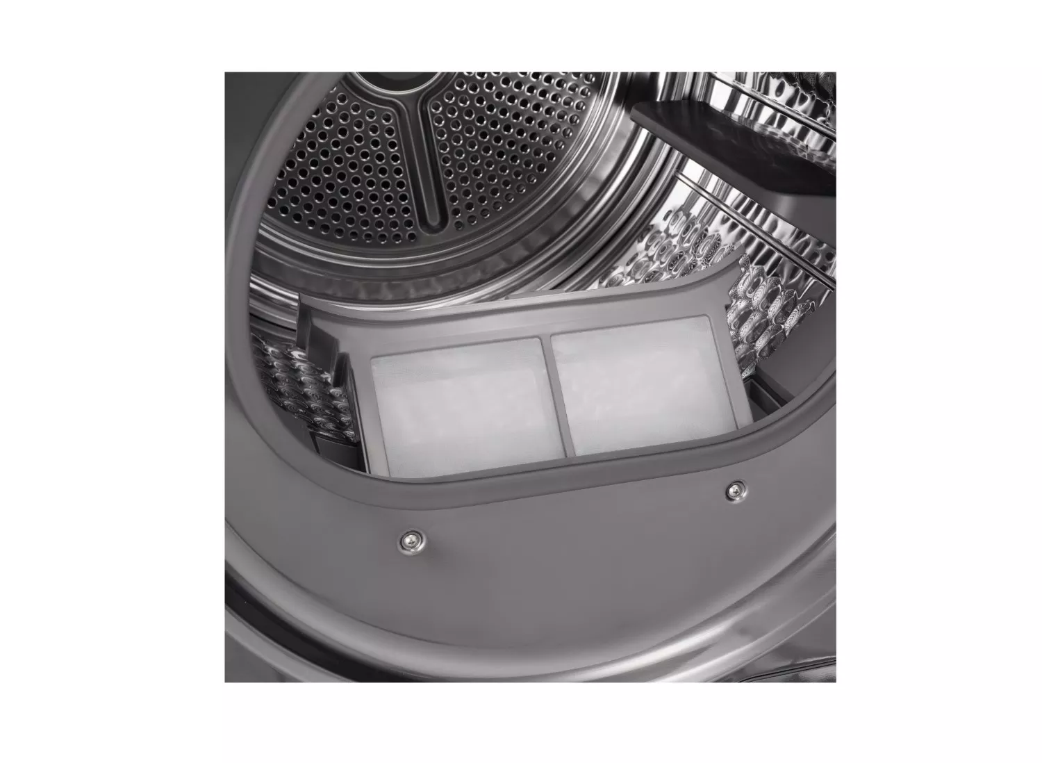 Технология Heat Pump схожа с принципом холодильника, только наоборот: внутри прибора компактно размещаются два важных элемента – горячий и холодный контуры. Задача горячего контура - нагреть воздух, который далее, при помощи вентилятора, попадает в барабан и забирает влагу из мокрых тканей. Второй активный холодный контур эту влагу собирает и отправляет в съемный резервуар. Такая технология позволяет меньше нагревать воздух, что помогает сушить вещи деликатнее и существенно снижать потребление электроэнергии. Температура нагрева тканей не превышает 50°C – вещи не подвергаются лишней термической обработке. Потребление электроэнергии у такого прибора существенно ниже обычных конденсационных аналогов.