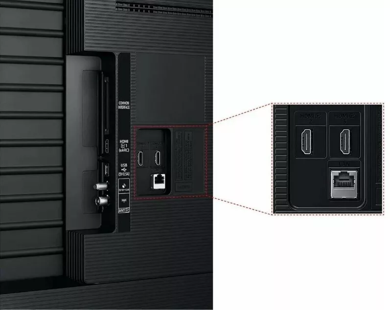 Смарт ТВ телевизор Самсунг отличается тонкой рамкой, усиливающей ощущение полного погружения в отображаемый контент.