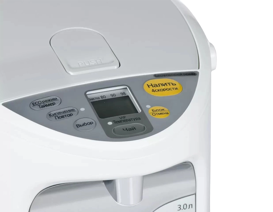 вращение на 360 градусов, двойные стенки, дисплей, индикатор уровня воды, индикация включения