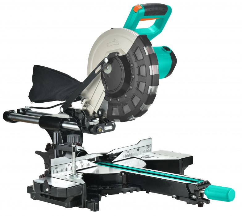 Инструмент оснащен увеличенным пильным диском, встроенным протяжным механизмом, винтовым зажимом для прочной фиксации заготовок и предотвращающие их опрокидывание выдвижными боковыми суппортами. Благодаря большому поворотному столу, фиксирующемуся в любом положении, наличию удобной регулировки с прецизионными шкалами для точной настройки нужного наклона пилу можно уверенно выставить в рабочую позицию на предварительно заданные параметры косых пропилов.