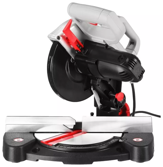 Мощность торцовочной пилы – 900 Вт. Работает этот инструмент от сети 220 В. Скорость вращения установленного диска – до 5000 оборотов в минуту. Он быстро распиливает заготовку, обеспечивает точный и чистый рез.