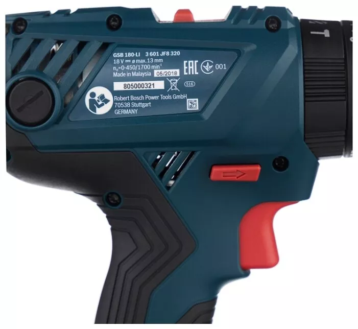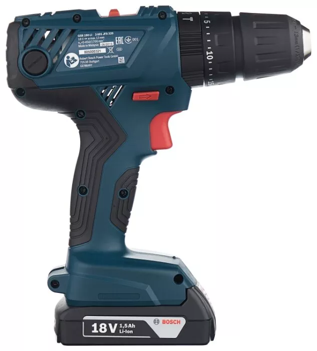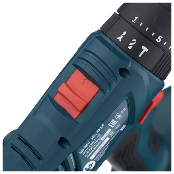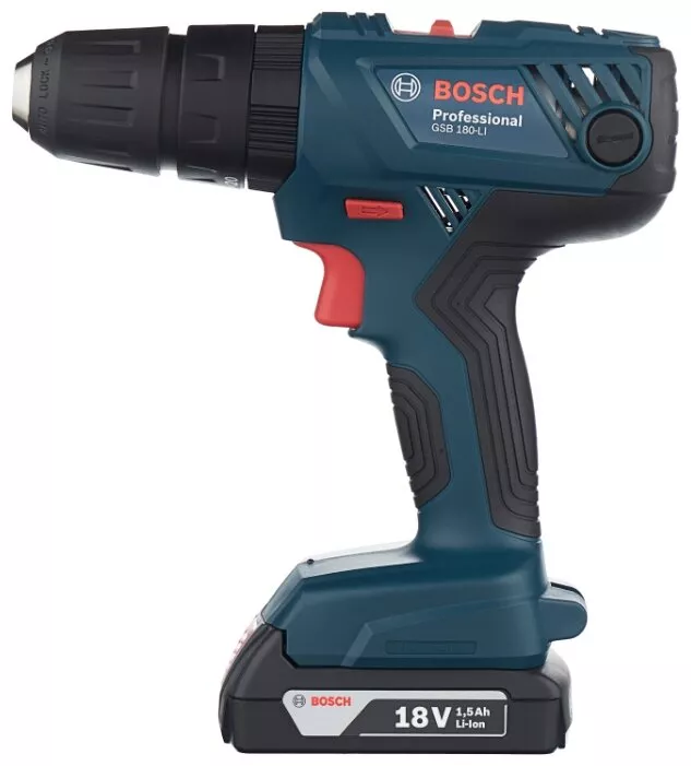 Дрель-шуруповерт аккумуляторная ударная BOSCH GSB 180-LI 1.5 А·ч x2 кейс 54 Н·м