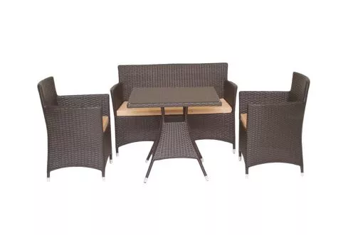 (стол Верона 80х80 2 уп., диван, 2 кресла, ротанг коричневый, подушки беж)