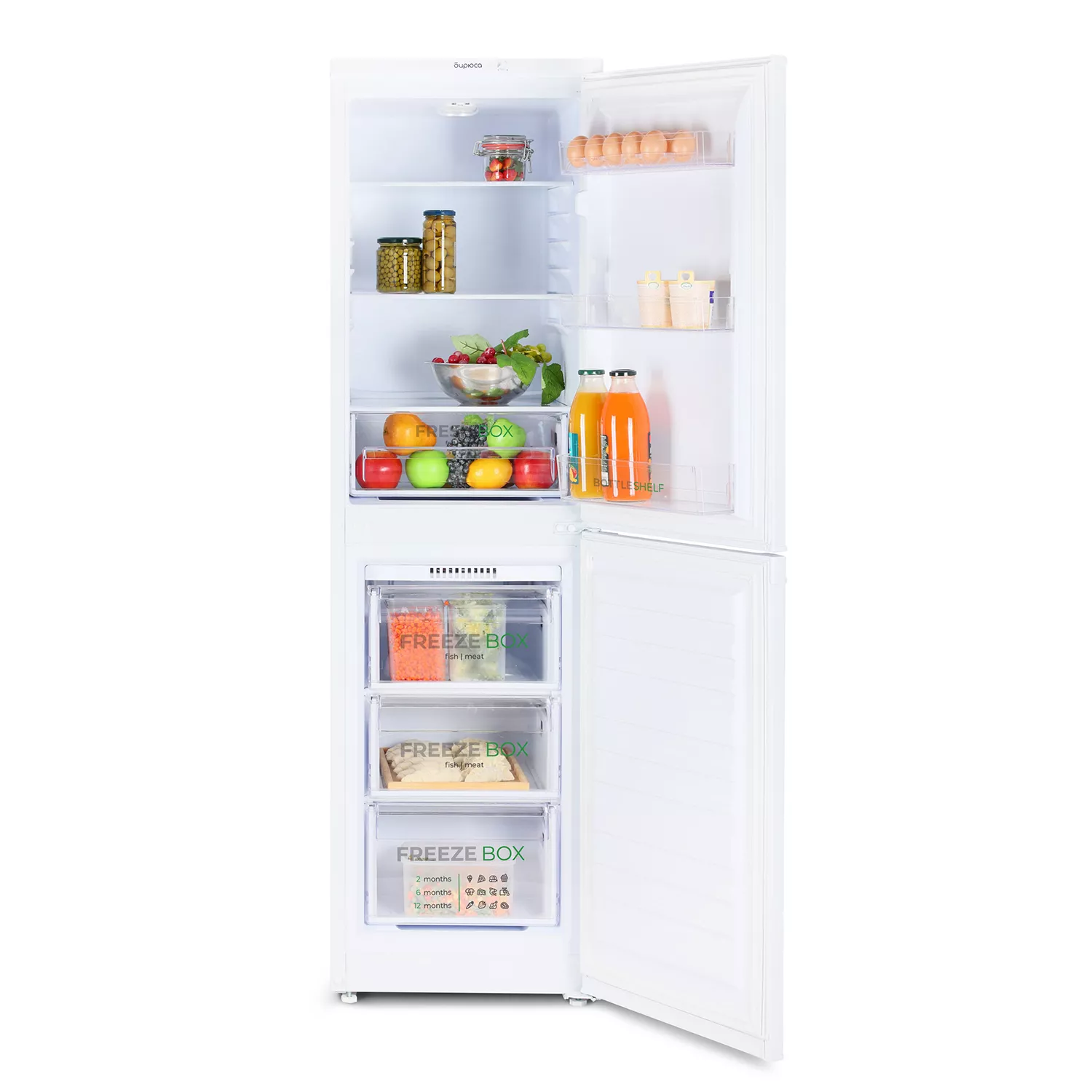 • Вместительную морозильную камеру с тремя объёмными ящиками, где легко разместятся мясо, полуфабрикаты и сезонные ягоды.