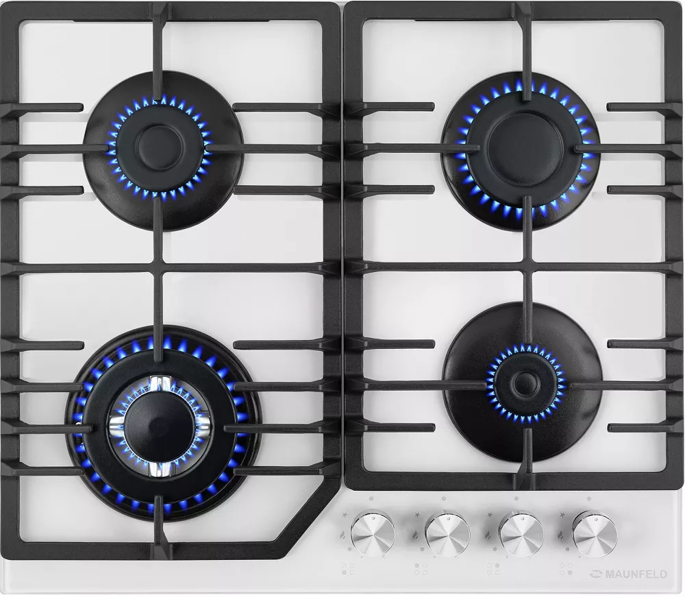 Газовая варочная поверхность MAUNFELD EGHG.64.43CW/G отличается общей производительностью 8.2 кВт. Модель оснащена 4 конфорками разного диаметра и мощности, среди которых одна имеет сдвоенный контур огня и обладает мощностью 3.8 кВт, что позволяет быстро и качественно готовить различные блюда, в том числе, WOK. Две конфорки отличаются мощностью 1.7 кВт и одна дополнительная — на 1 кВт. Варочная панель поставляется с набором дополнительных форсунок.
