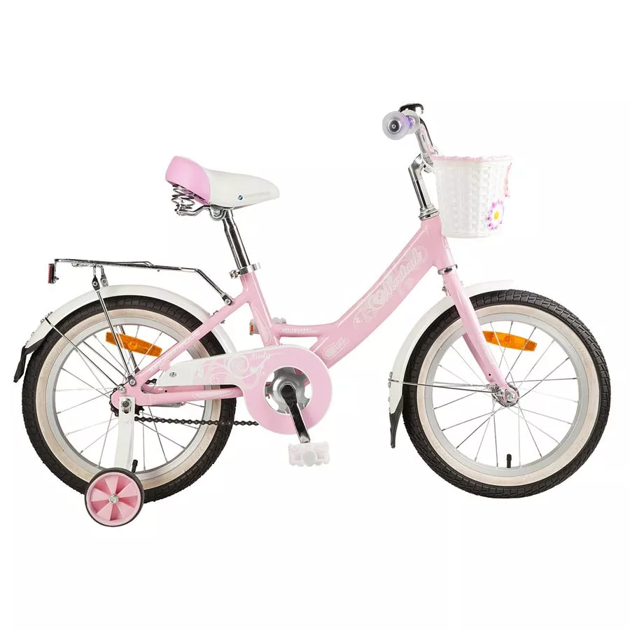 Novatrack Girlish line 16’’ – это современный, удобный и безопасный велосипед для девочек 5-7 лет. Форма рамы разработана специально для девочек: им очень удобно забираться на сидение и слезать с велосипеда в любом наряде, а также комфортно крутить педали в платьице или брюках. Материал рамы - алюминий, благодаря чему велосипед очень легкий, и ребенок с без труда сможет управляться со своим велосипедом. На руле велосипеда установлен звоночек с приятным звуком, чтобы предупредить зазевавшихся прохожих о приближающимся кортеже принцессы, а также корзина для перевозки любимых игрушек. В темное время суток заметить транспортное средство помогут светоотражатели, которые установлены, по одному, на каждом из колес, на руле и сидении.