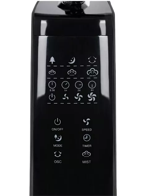Вентилятор HIBERG FW 400 B оснащен встроенным таймером отключения от 0,5 до 7,5 часов с шагом настройки 0,5 часа, с помощью которого можно задать время отключения, тремя скоростями обдува и тремя режимами увлажнения воздуха.
