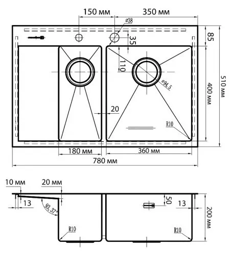 Размеры мойки (ШхГ)