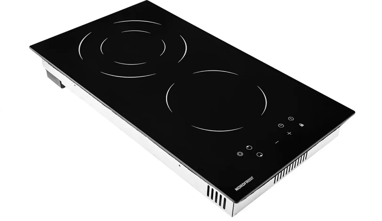 Встраиваемая электрическая варочная поверхность NORDFROST EM 3029 B выполнена из стеклокерамики Kanger и оснащена двумя электрическими конфорками с сенсорным управлением.