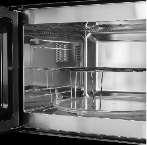 Вместительная внутренняя камера объемом 25 литров с поворотным столом и встроенный гриль позволят быстро и эффективно подогреть или полностью приготовить блюда.