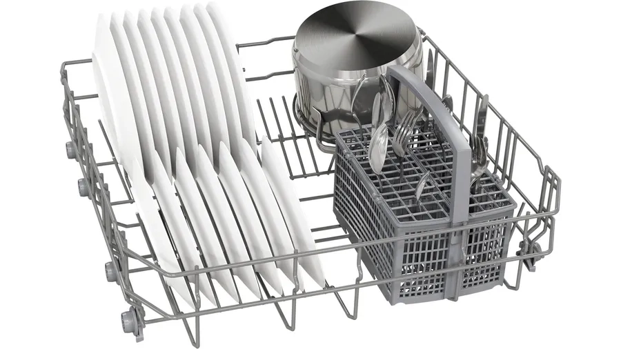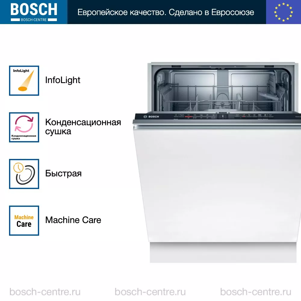 Встраиваемая посудомоечная машина Bosch SMV2ITX18E — это сочетание современного дизайна и инновационных технологий. Произведенная в Евросоюзе, эта модель оснащена полноразмерной вместительной камерой, в которую легко помещается до 12 комплектов посуды. Корпус машины выполнен из надежной нержавеющей стали и пластика, что гарантирует долгий срок службы устройства. Модель оснащена инверторным двигателем EcoSilence Drive, обеспечивающим тихую и эффективную работу. Это позволяет использовать посудомоечную машину в любое время, не беспокоясь о создании лишнего шума. Кроме того, встроенная система AquaStop обеспечивает полную защиту от протечек, автоматически блокируя подачу воды при обнаружении утечки. Благодаря пяти стандартным программам и пяти температурным режимам, Bosch SMV2ITX18E позволяет выбрать наиболее подходящий режим для каждого типа посуды. Быстрая программа идеально подойдет для ежедневного использования, экономичная поможет сэкономить воду и электроэнергию, а интенсивная справится даже с самыми стойкими загрязнениями. Также есть возможность выбрать режим половинной загрузки или использовать функцию SpeedPerfectPlus для ускорения процесса мытья. Дизайн панели управления выполнен в строгом черном цвете. Кнопки управления и дисплей делают использование машины простым и удобным. На дисплее отображается информация о выбранной программе, времени до окончания работы и наличии ополаскивателя и соли. Также на полу проецируется луч InfoLight, который показывает, работает ли машина в данный момент. Устройство оборудовано двумя корзинами для удобной загрузки посуды. Встраиваемая посудомоечная машина Bosch SMV2ITX18E обладает классом энергопотребления A++, что делает ее экономичной и экологичной.