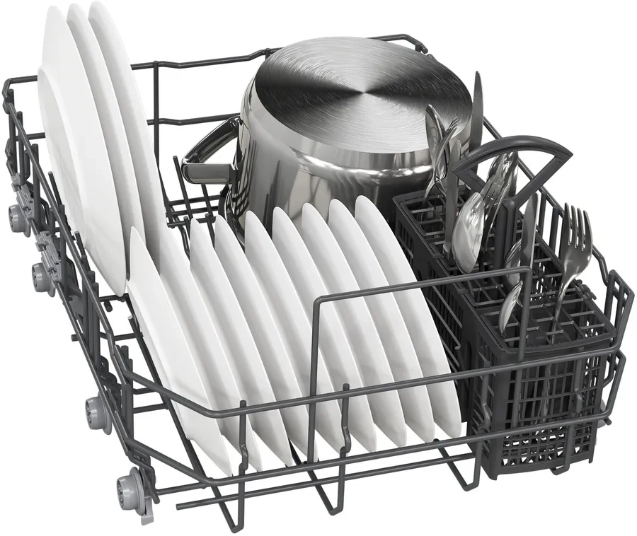 Siemens SR53ES24KE предлагает 6 программ мойки, которые покроют все ваши потребности. Среди них — экономичная программа для ежедневного использования, интенсивный режим для сильнозагрязненной посуды и экспресс-программа «60 минут» для быстрого результата. Особого внимания заслуживает режим IntensiveZone, который концентрирует мощные струи воды в нижней корзине, идеально отмывая противни и кастрюли.