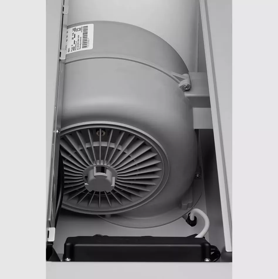 Модель подключается к электросети и потребляет 140 Вт. Присутствует встроенный обратный клапан. В процессе работы вытяжка создает шум мощностью не более 42 дБ. Модель оборудована таймером.