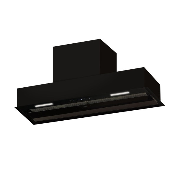 • Эффективная система фильтрации. За откидной панелью из прочного закаленного стекла скрываются жироулавливающие алюминиевые фильтры. Они легко снимаются для чистки, а для режима рециркуляции предусмотрена установка угольного фильтра. Воздух эффективно втягивается по всему периметру панели, обеспечивая максимальный захват испарений.