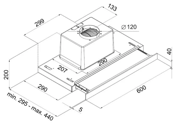 • Эффективная фильтрация: Встроенный металлический жировой фильтр надежно улавливает частицы жира, защищая внутренние механизмы и мебель.