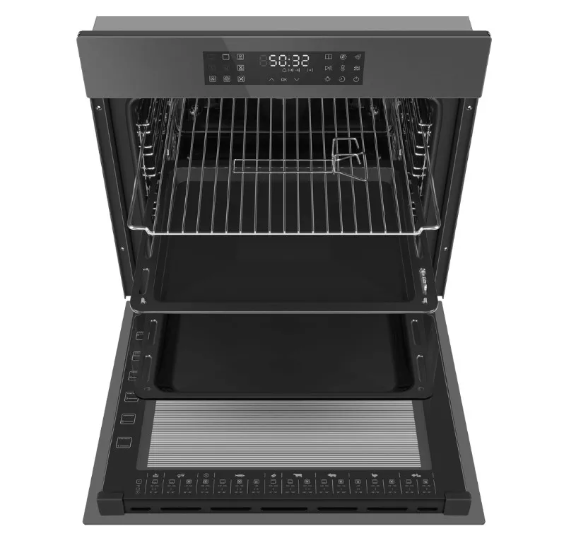 Встраиваемый электрический духовой шкаф MAUNFELD EOEH7614DGR — это стильное и технологичное решение для современной кухни. Его тёмно-серый фасад из закалённого стекла в сочетании с фурнитурой под нержавеющую сталь легко впишется в любой дизайн, придав ему нотку сдержанной элегантности. Эта модель создана для тех, кто ценит не только внешнюю эстетику, но и безупречную функциональность.