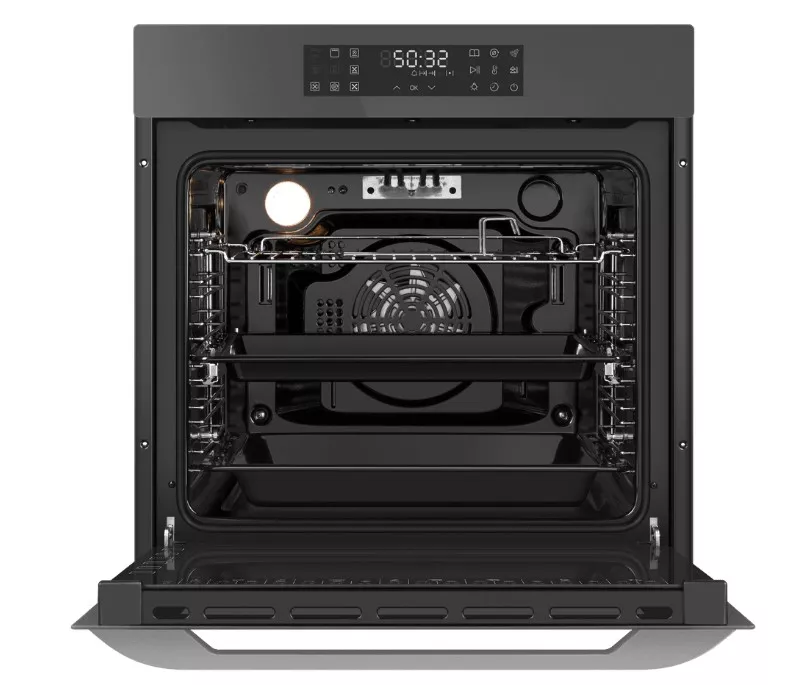 Сенсорная панель управления делает взаимодействие с прибором невероятно простым и точным. Оснащённый 11 режимами работы, этот духовой шкаф становится универсальным инструментом для кулинарных экспериментов — от деликатного томления до приготовления хрустящей выпечки. Функция конвекции обеспечивает равномерное распределение горячего воздуха по всему объёму камеры, поэтому блюда пропекаются идеально со всех сторон.