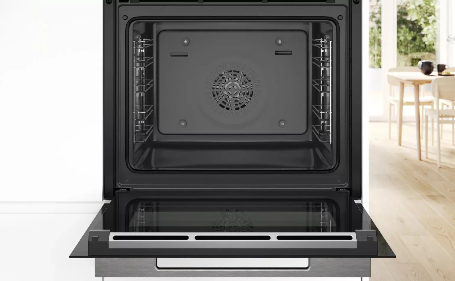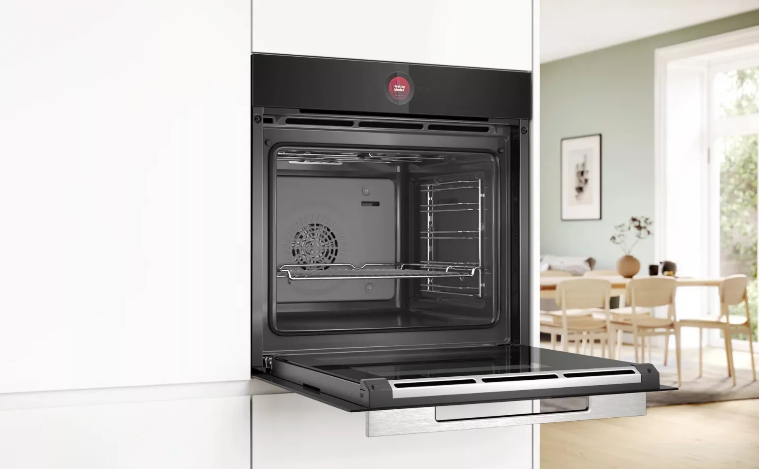 Прибор поддерживает функцию Home Connect, что позволяет управлять им дистанционно. Он оснащен 13 режимами нагрева, включая 3D-горячий воздух, верхний/нижний жар, большой и малый гриль, гриль с конвекцией, подогрев посуды, поддержание температуры и размораживание. Температурный диапазон прибора составляет от 30 до 300 градусов Цельсия. Внутреннее освещение обеспечивается галогенной лампой, а система очистки EcoClean облегчает уход за прибором. Дверца шкафа откидная, с трехслойным остеклением, что предотвращает перегрев наружного стекла (максимальная температура 40 градусов Цельсия). Благодаря системе охлаждения, прибор не нагревается во время работы, что обеспечивает безопасность использования. В комплект входят комбинированная решетка и эмалированный противень.