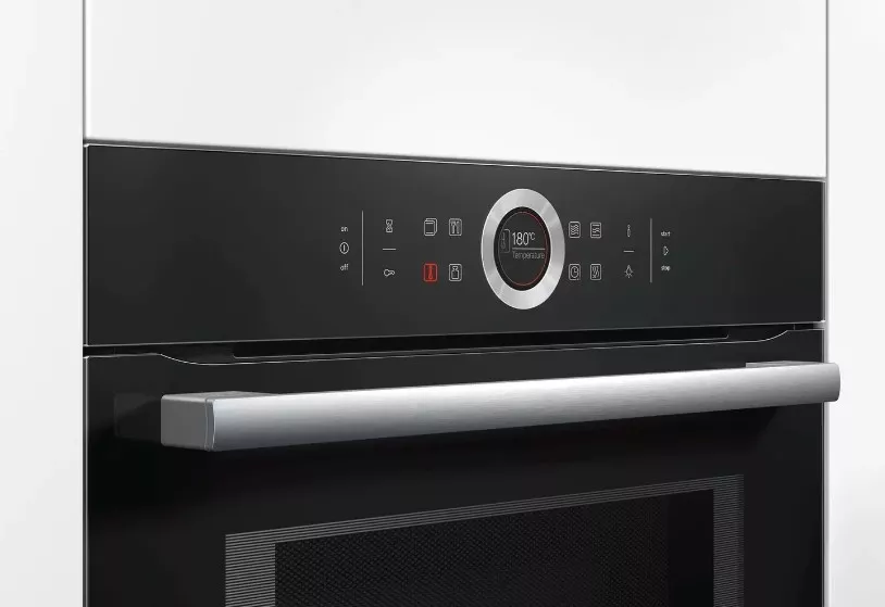 Управление прибором осуществляется с помощью сенсорных переключателей Control Ring, что обеспечивает удобство и простоту использования. На 2.5-дюймовом цветном TFT дисплее с сенсорными кнопками отображается вся необходимая информация о процессе приготовления пищи. Духовой шкаф оснащен многофункциональными часами Easy Clock и таймером для контроля времени приготовления.