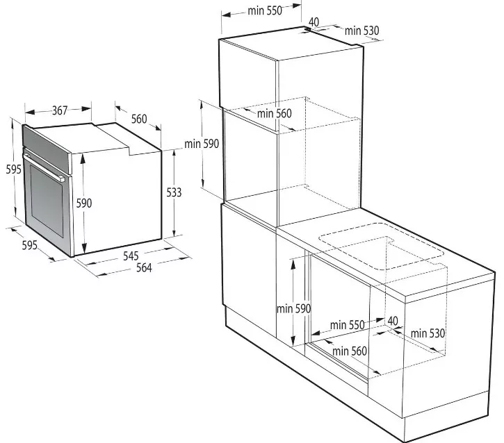 Вентилятор охлаждения, Встроенные часы, Дисплей, Доводчик дверцы духовки, размораживание, таймер |