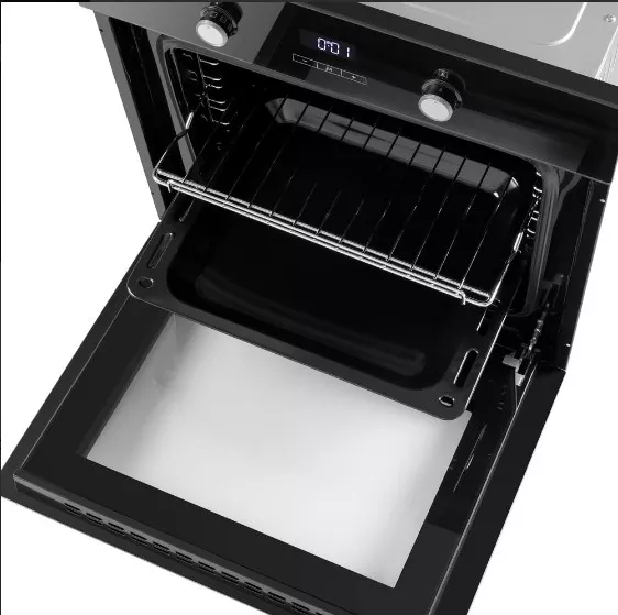 • Легкость в уходе: Внутреннее покрытие из эмали легкой очистки и прочные хромированные направляющие упрощают поддержание чистоты после готовки.