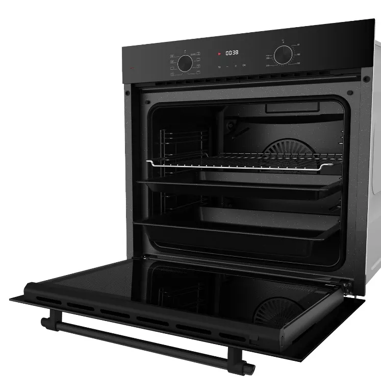 Духовой шкаф относится к серии MAX, основная особенность которой — увеличенный объем рабочей камеры (78 литров). Кроме того, эти модели имеют утапливаемые ручки управления, а в дверце установлено стекло немецкого бренда SCHOTT.
