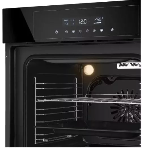 Производитель продумал каждую деталь для вашего удобства. Внутреннее покрытие из эмали легкой очистки и гидролизная система (очистка паром) сводят усилия по поддержанию чистоты к минимуму. Тройное стекло в дверце не только обеспечивает эффективную теплоизоляцию, но и позволяет наблюдать за процессом готовки, не открывая духовку. Элегантный черный фасад из стекла и металлический корпус делают модель универсальным решением для любого современного кухонного интерьера.
