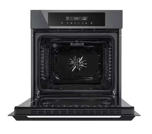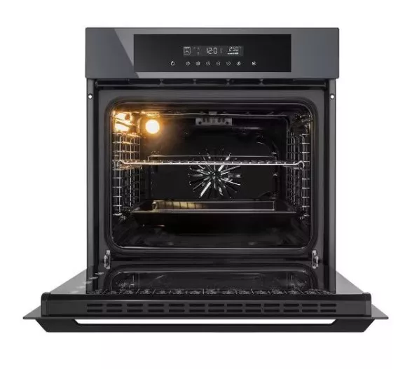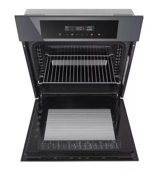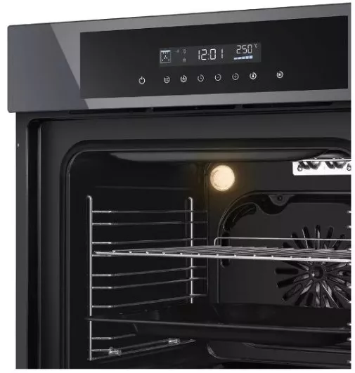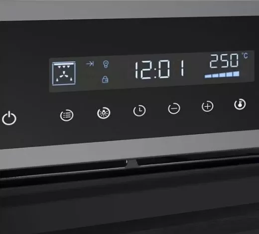 • Интуитивное управление: Сенсорная панель и информативный дисплей делают управление простым и точным. Всего одно прикосновение — и вы задаете нужную температуру (до 250°C) или устанавливаете таймер. Функция быстрого нагрева экономит ваше время, моментально доводя духовку до рабочей температуры.