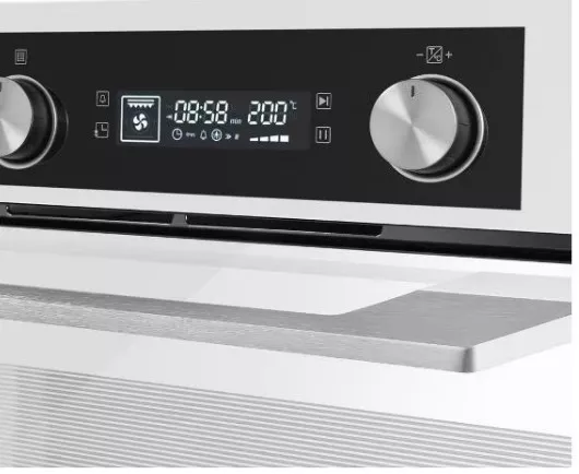 • Идеальный обзор и безопасность: Дверца с тремя стеклами не только обеспечивает эффективную теплоизоляцию, но и позволяет следить за процессом приготовления, не открывая духовку. Функция защиты от детей обезопасит вашу кухню для самых маленьких членов семьи.