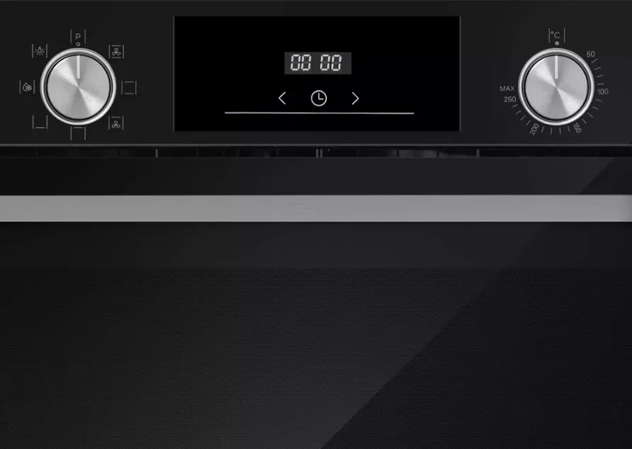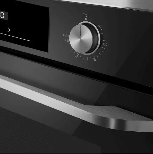 Управление духовкой продумано до мелочей. Механические утапливаемые переключатели в сочетании с сенсорными элементами обеспечивают точный контроль над процессом готовки. Встроенный таймер подаст сигнал, когда блюдо будет готово, а мощная подсветка и тройное стекло дверцы позволят визуально контролировать процесс, не выпуская тепло.