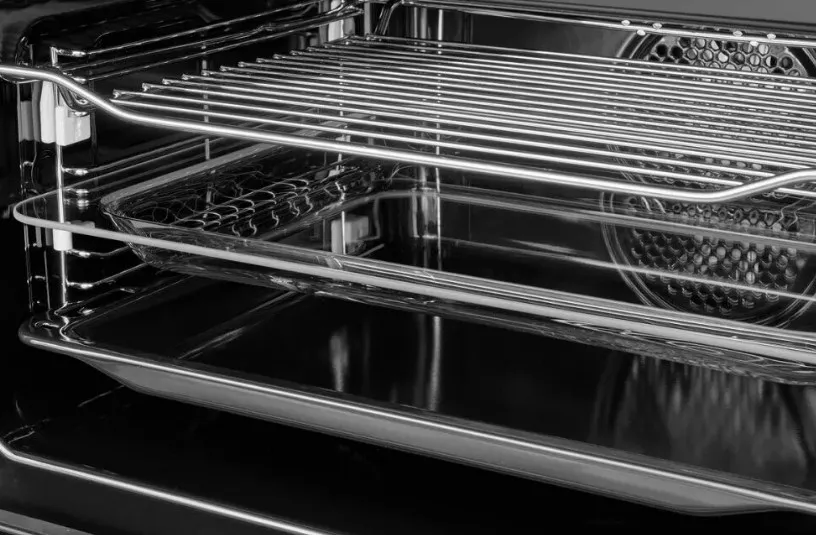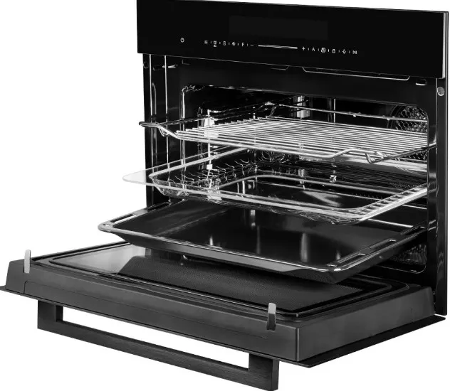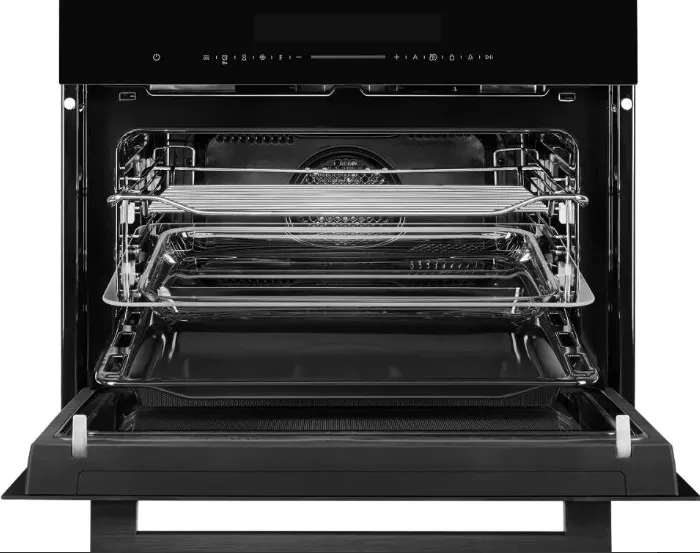 Помимо СВЧ, духовка оснащена электрическим грилем мощностью 2200 Вт для идеальной прожарки стейков, овощей или курицы с хрустящей корочкой, а также системой конвекции для равномерного выпекания на нескольких уровнях одновременно.