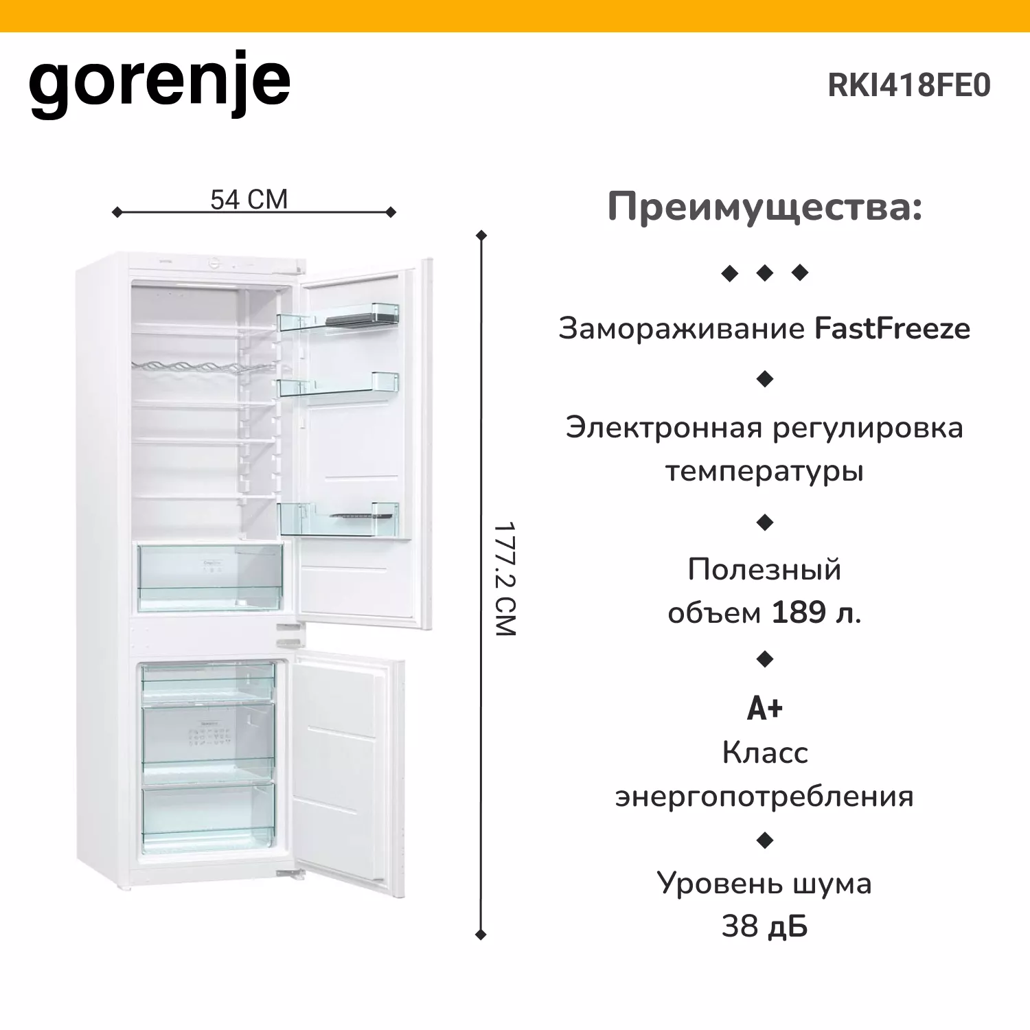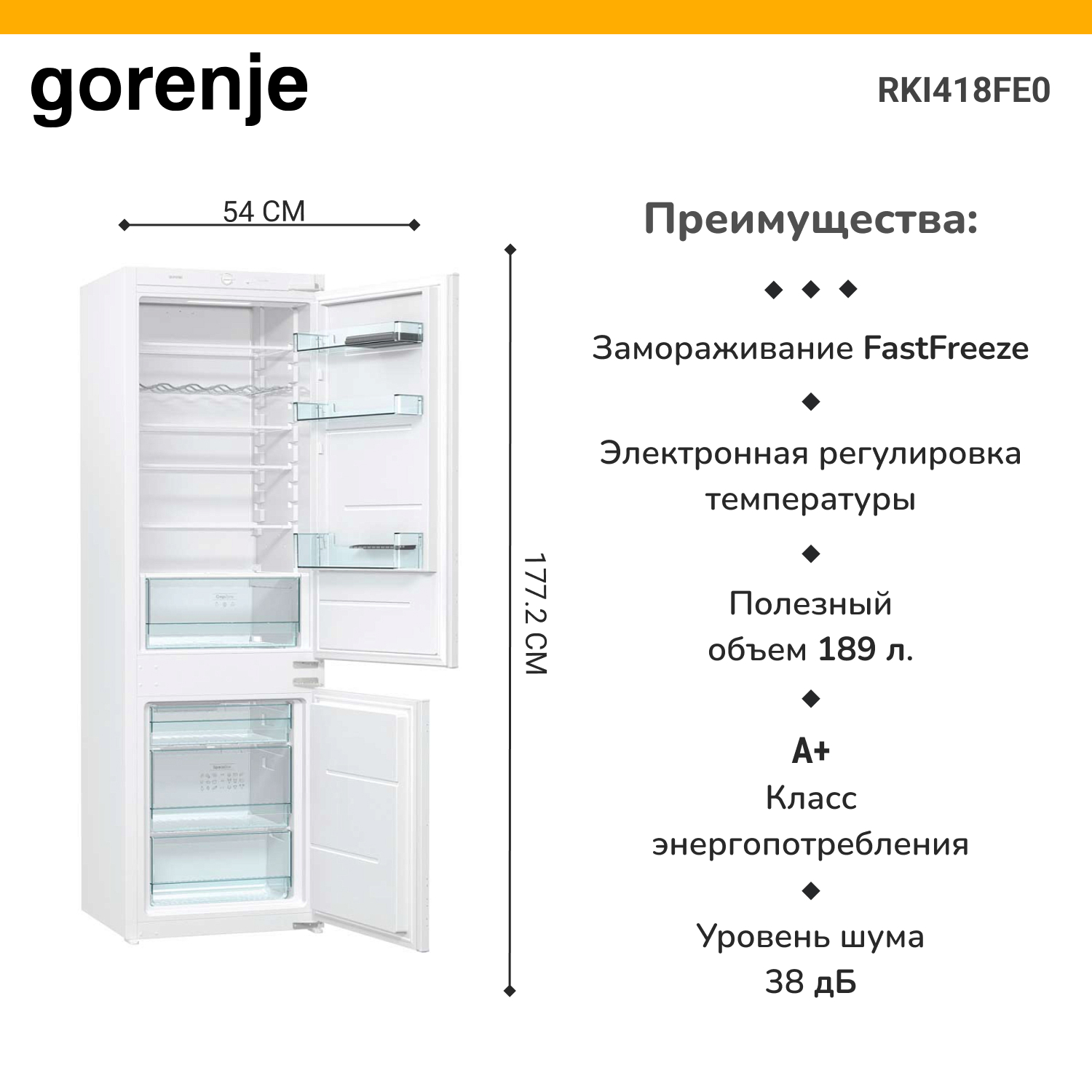 Встраиваемый холодильник Gorenje RKI418FE0