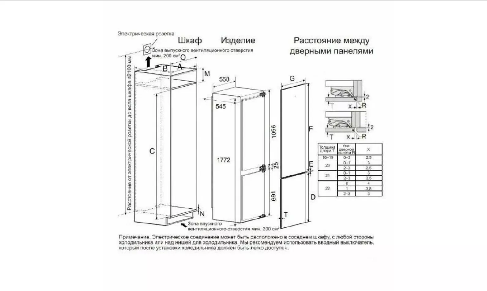 Размер ниши для встраивания (ВхШхГ) (см)