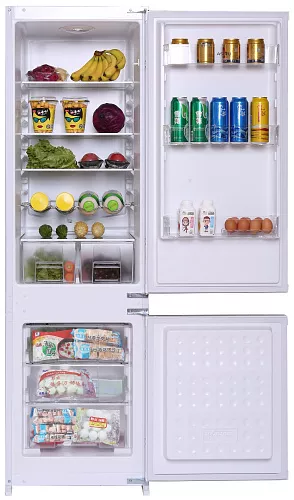 Встраиваемый холодильник HAIER HRF229BIRU может похвастаться отличной вместимостью. Его высота — 180 см, объём холодильного отделения — 181 л, а морозилки 48 л. Даже большая семья или любители кулинарных экспериментов смогут хранить в нём одновременно много свежих продуктов. В холодильнике полки из закалённого стекла с изменяемой высотой установки, в нижней части холодильного отделения — выдвижные контейнеры для фруктов и овощей. Металлическая двойная складная полка пригодится для охлаждения напитков, а также позволяет моделировать пространство в холодильнике, исходя из конкретных задач хранения. Современное светодиодное (LED) освещение — яркое, долговечное и не влияет на температуру в отделении, в отличие от ламп накаливания. Надёжный современный компрессор обеспечивает низкое энергопотребление — класс энергоэффективности А. HAIER HRF229BIRU — современный встраиваемый холодильник, который качественно сохранить продукты и не помешает экспериментам с дизайном кухни.