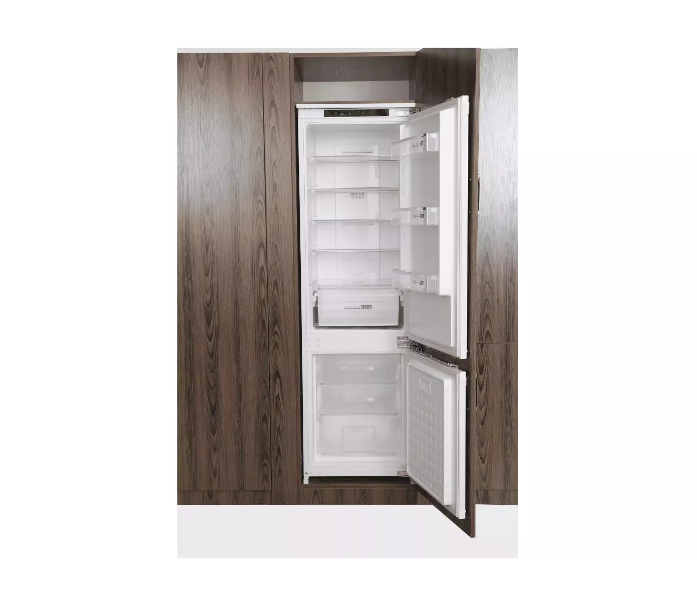 Ручное размораживание ушло в прошлое. В холодильном и морозильном отделении реализовано авторазмораживание Full No Frost — лёд в рабочих камерах не образовывается. Это ощутимо упрощает эксплуатацию холодильника.