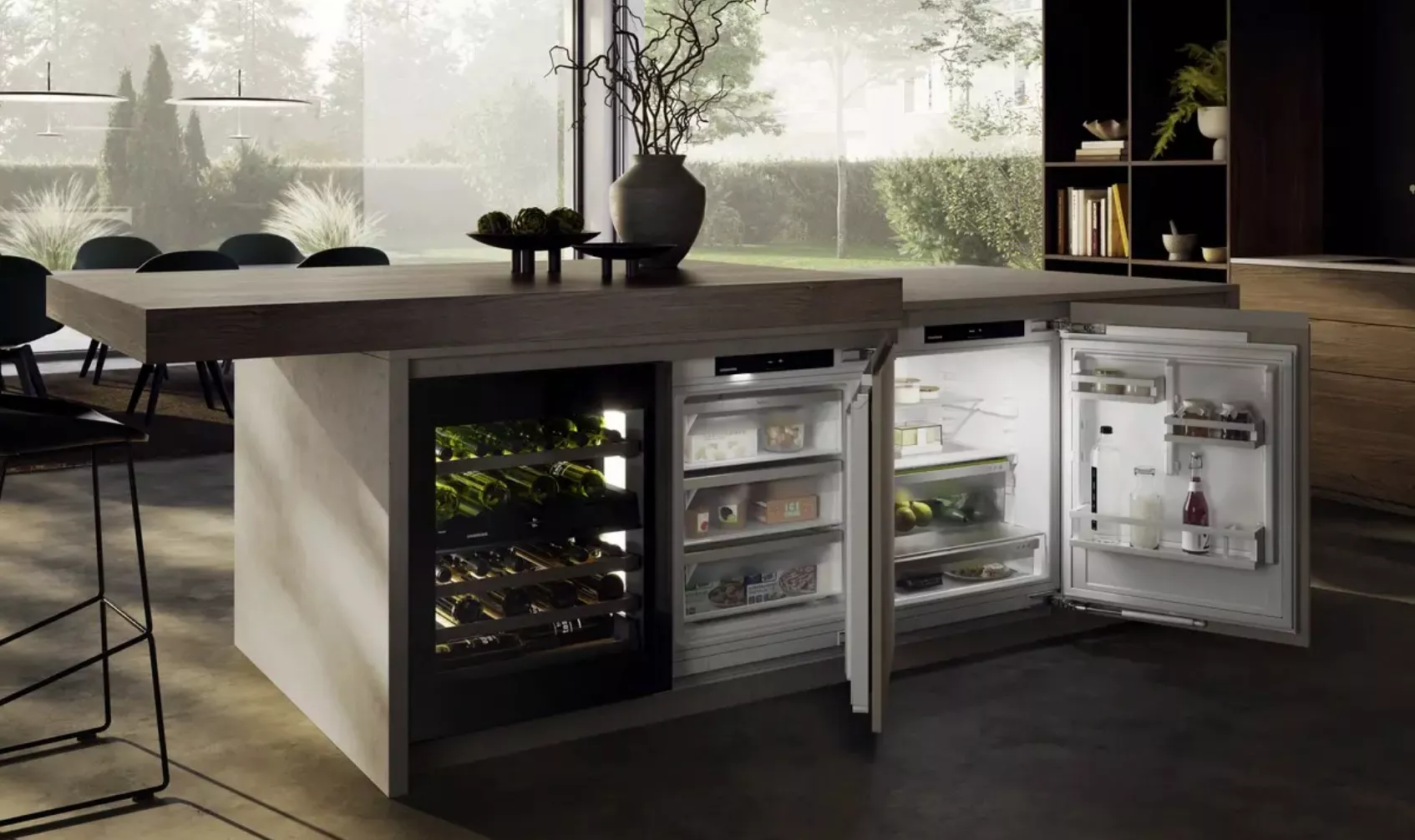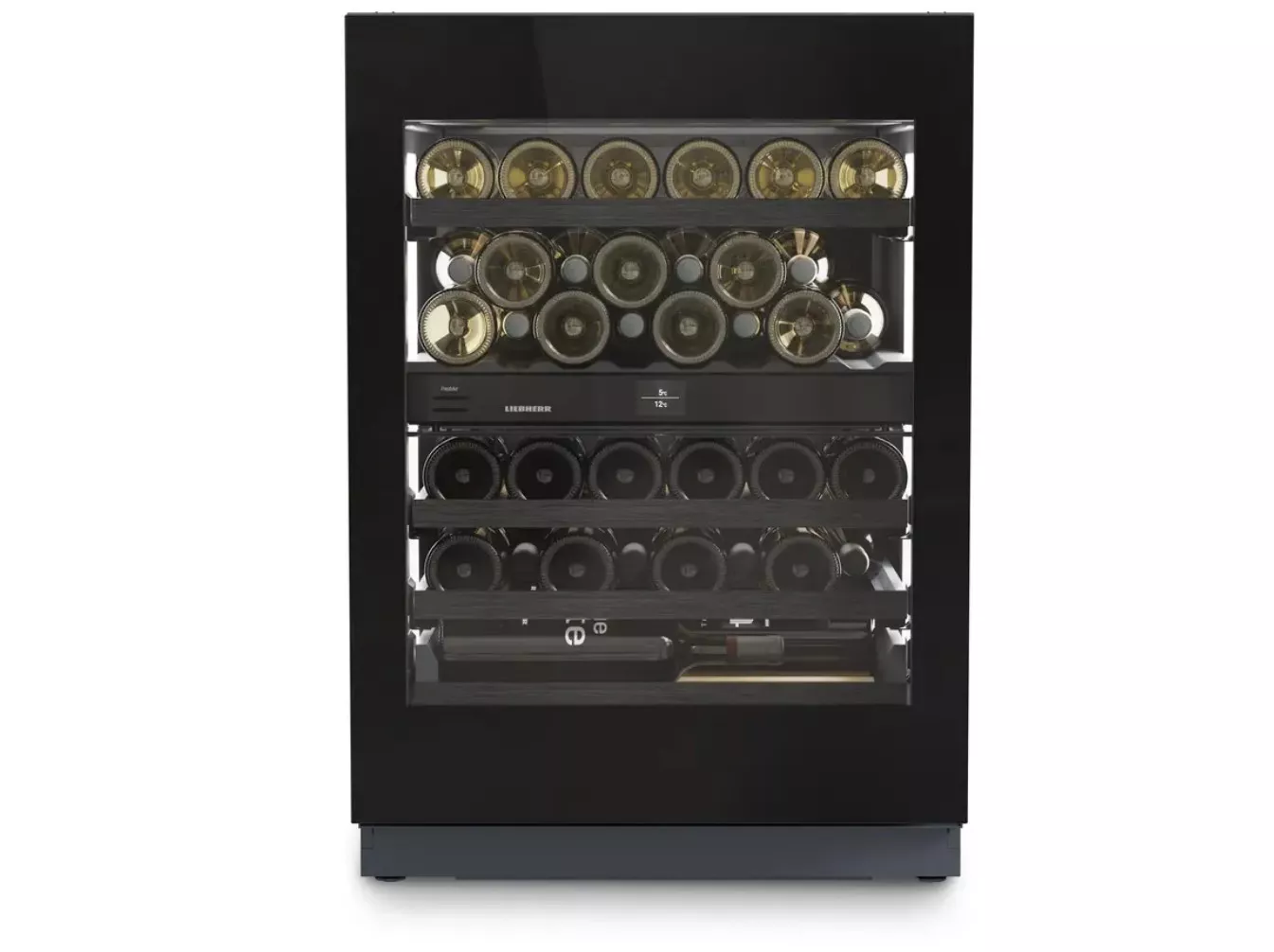 Винный шкаф Liebherr UWgbi 3782 серии Vinidor Selection с 2 температурными зонами встраивается под кухонную столешницу. Шкаф объемом 104 литра вмещает 38 бутылки Бордо 0,75 литра. Две вертикальные LED-колонны LightTower освещают винную коллекцию. Демонстрационное освещение в шкафу с регулировкой яркости на дисплее и через приложение SmartDevice. Дверь с тройной защитой от УФ-излучения UVProtect Plus открывается благодаря технологии TipOpen. Функция TempProtect Plus постоянно измеряет температуру внутри шкафа двумя датчиками, защищает от температурных колебаний.