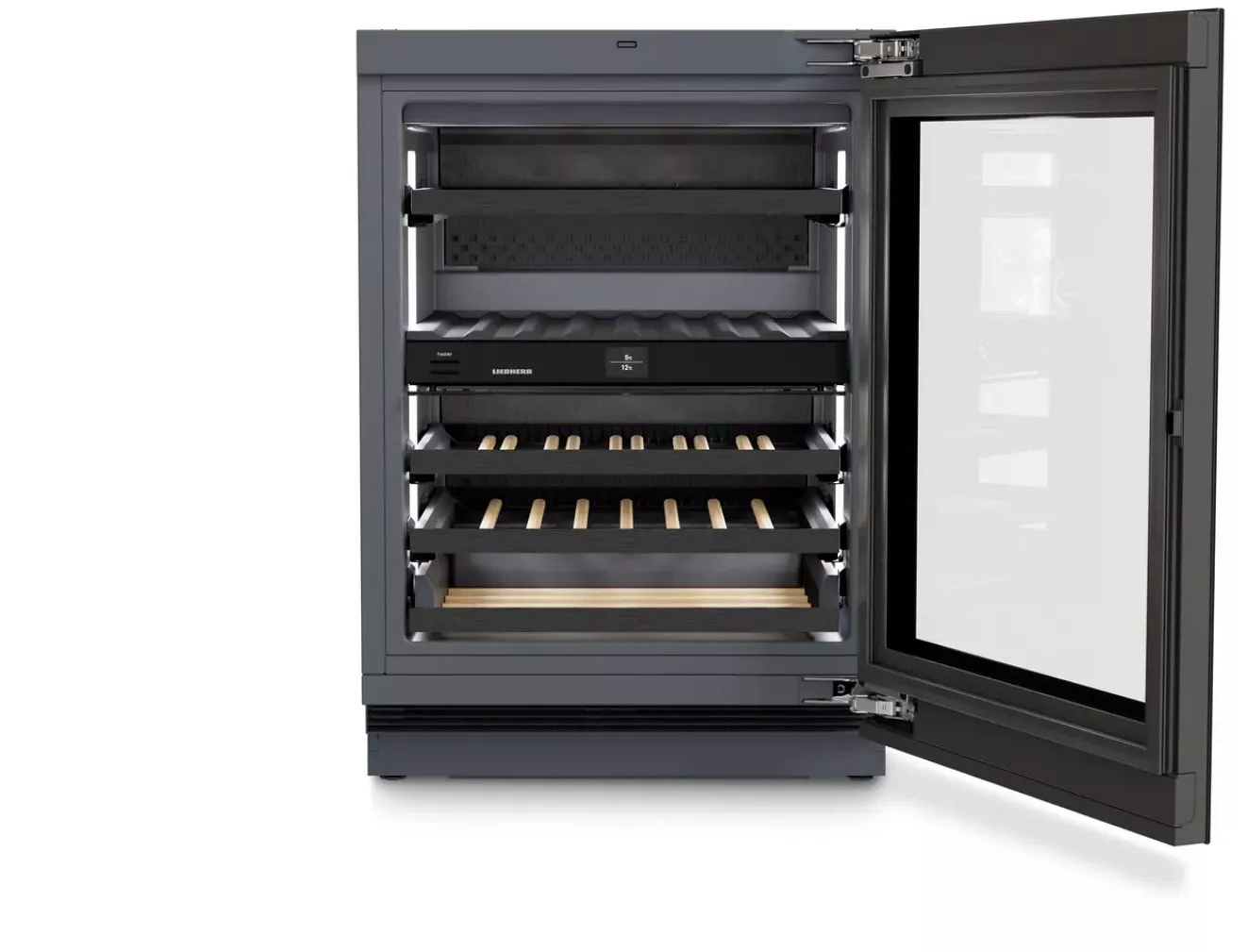 Винные шкафы LIEBHERR поддерживают необходимую влажность воздуха, защищают от вибраций и ультрафиолетового излучения. Для длительного хранения вина в винных шкафах поддерживается константная температура. При наведении курсора на маркер появится больше информации о функциях данной модели Liebherr.