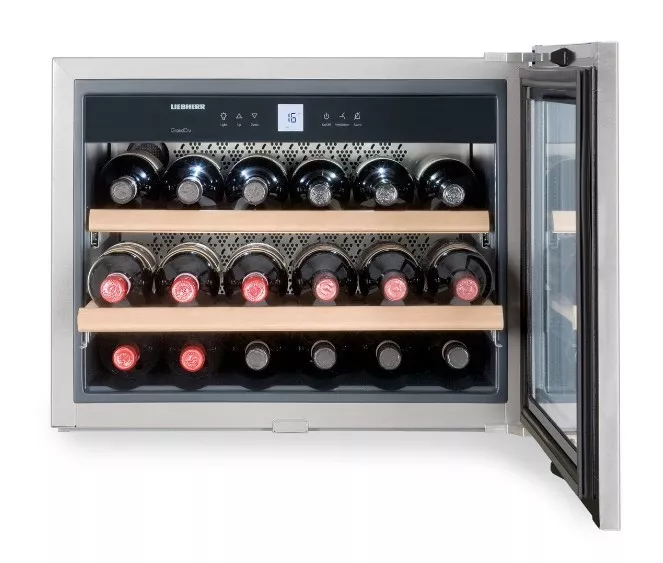 LIEBHERR WKEes 553 представляет собой встраиваемый компактный винный шкаф с 3 полками из натурального дерева. Благодаря специальному компрессору, вино хранится в условиях минимальной вибрации. При внешних перепадах температуры внутри винного шкафа поддерживается идеальный температурный режим, который можно регулировать. При необходимости можно включить подогрев. Например, при сервировке красного вина.